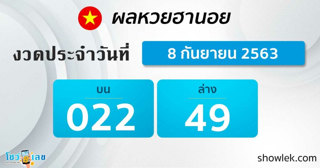 ผลหวยฮานอย 8 ก.ย. 63 อัปเดตล่าสุด ผลหวยเวียดนามวันนี้