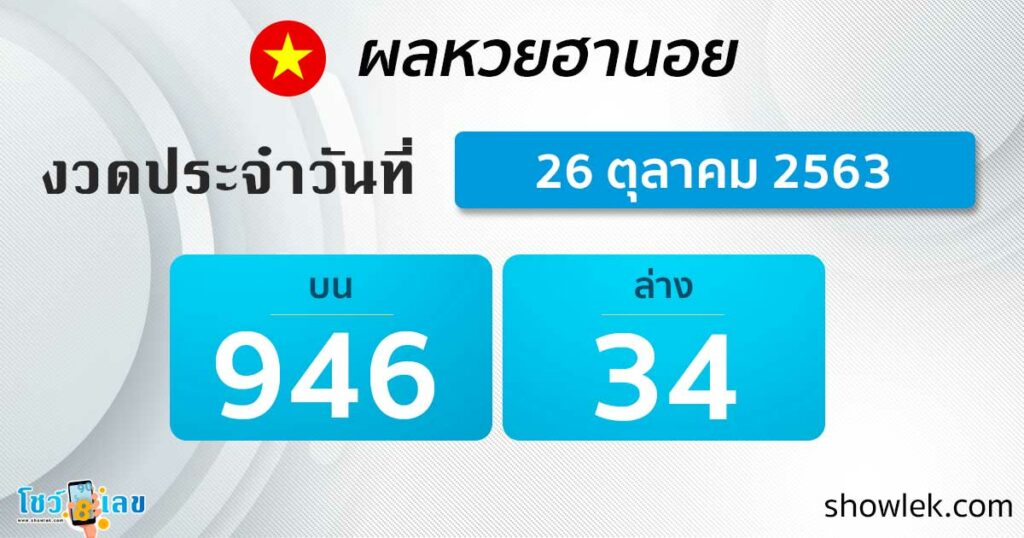 ผลหวยฮานอย 26 ต.ค. 63 อัปเดตล่าสุด ผลหวยเวียดนามวันนี้