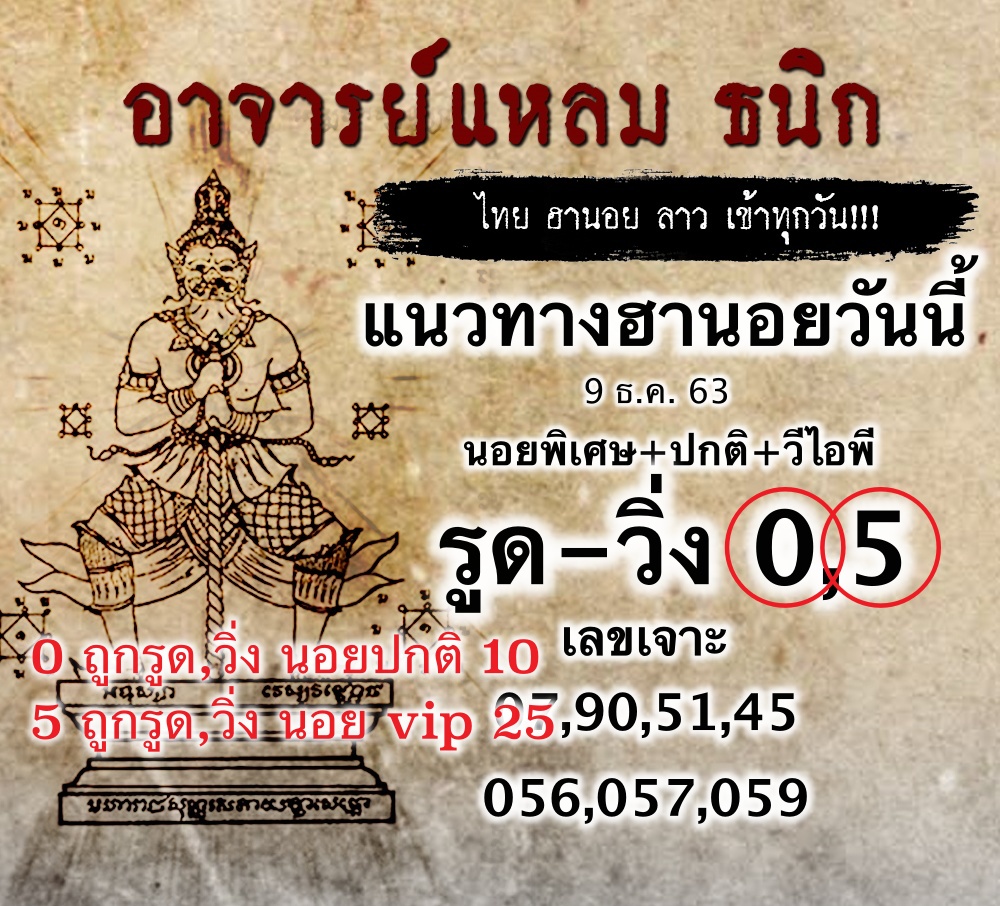 สรุป ผลหวยฮานอย งวดวันที่ 9 ธ.ค. 63