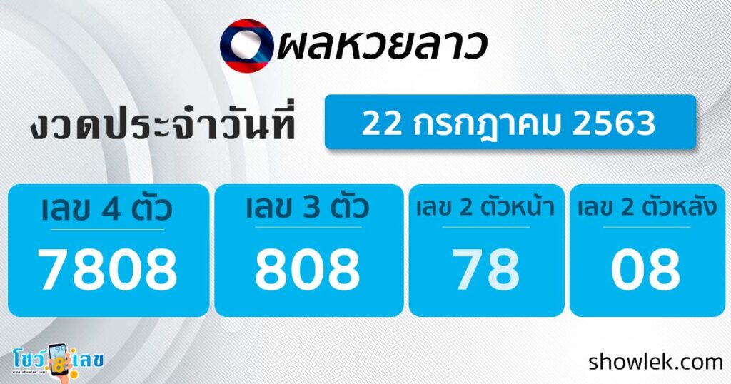 อัปเดตล่าสุด ผลหวยลาว 22 ก.ค. 63 เช็คผลหวยทันใจที่เว็บไซต์ โชว์เลขดอทคอม มาดูกันเลยว่าจะใช่เลขที่เก็งไว้หรือเปล่า