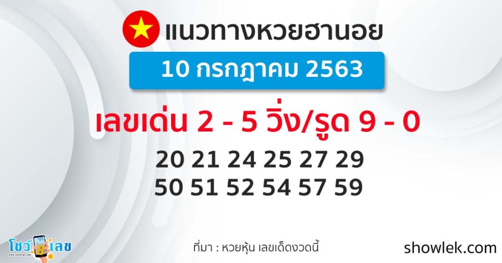 แนวทางหวยฮานอย งวดวันที่ 10 ก.ค. 2563