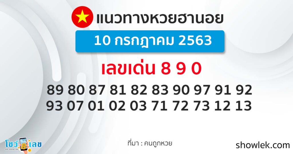 เลขเด็ดฮานอย 10 กรกฎาคม 2563 โดย คนถูกหวย