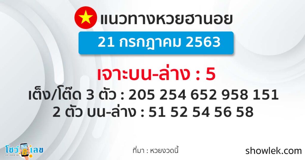 แนวทางหวยฮานอย งวดวันที่ 21 ก.ค. 2563