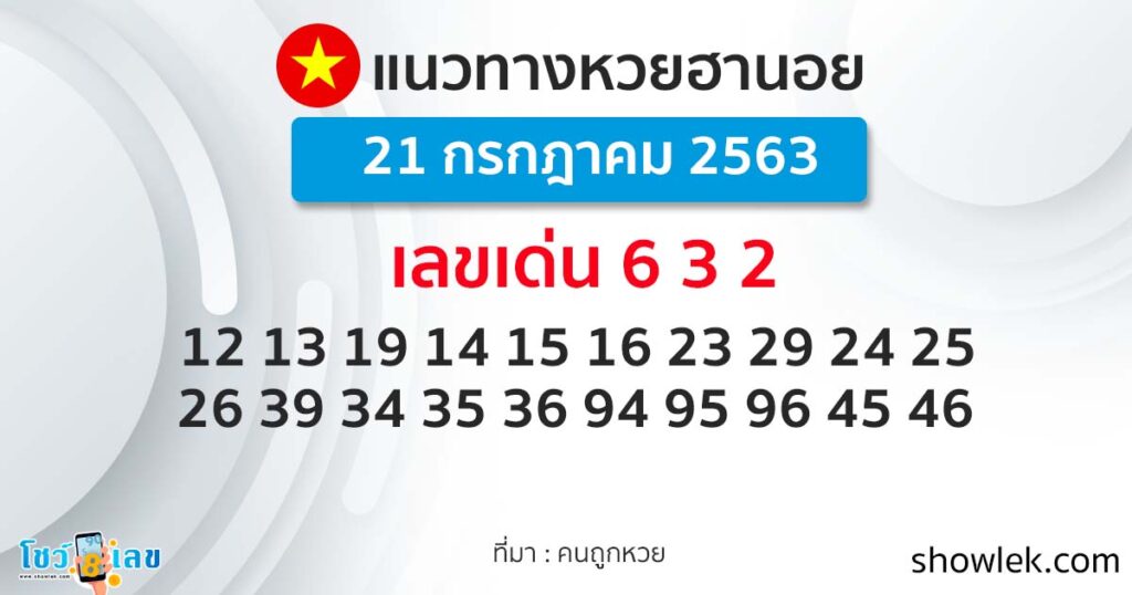 เลขเด็ดฮานอย 21 กรกฎาคม 2563 โดย คนถูกหวย