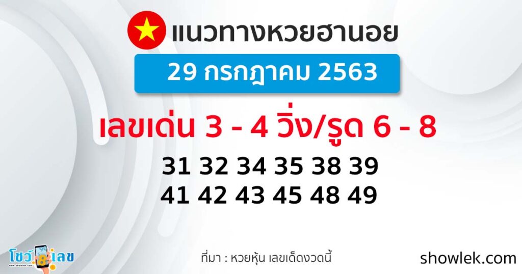 แนวทางหวยฮานอย งวดวันที่ 29 ก.ค. 2563