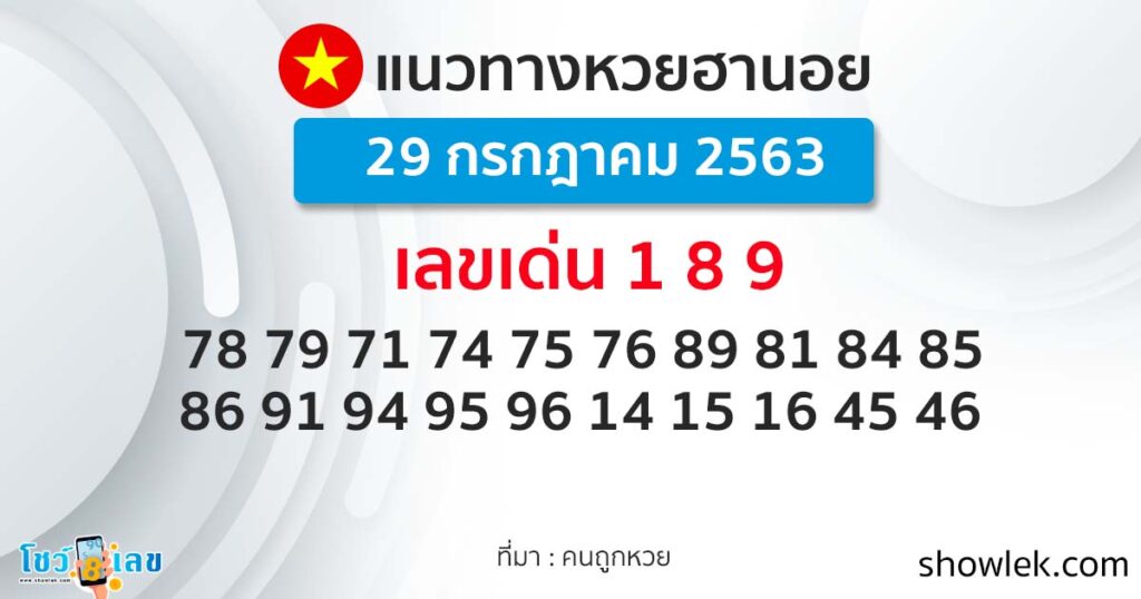 เลขเด็ดฮานอย 29 กรกฎาคม 2563 โดย คนถูกหวย