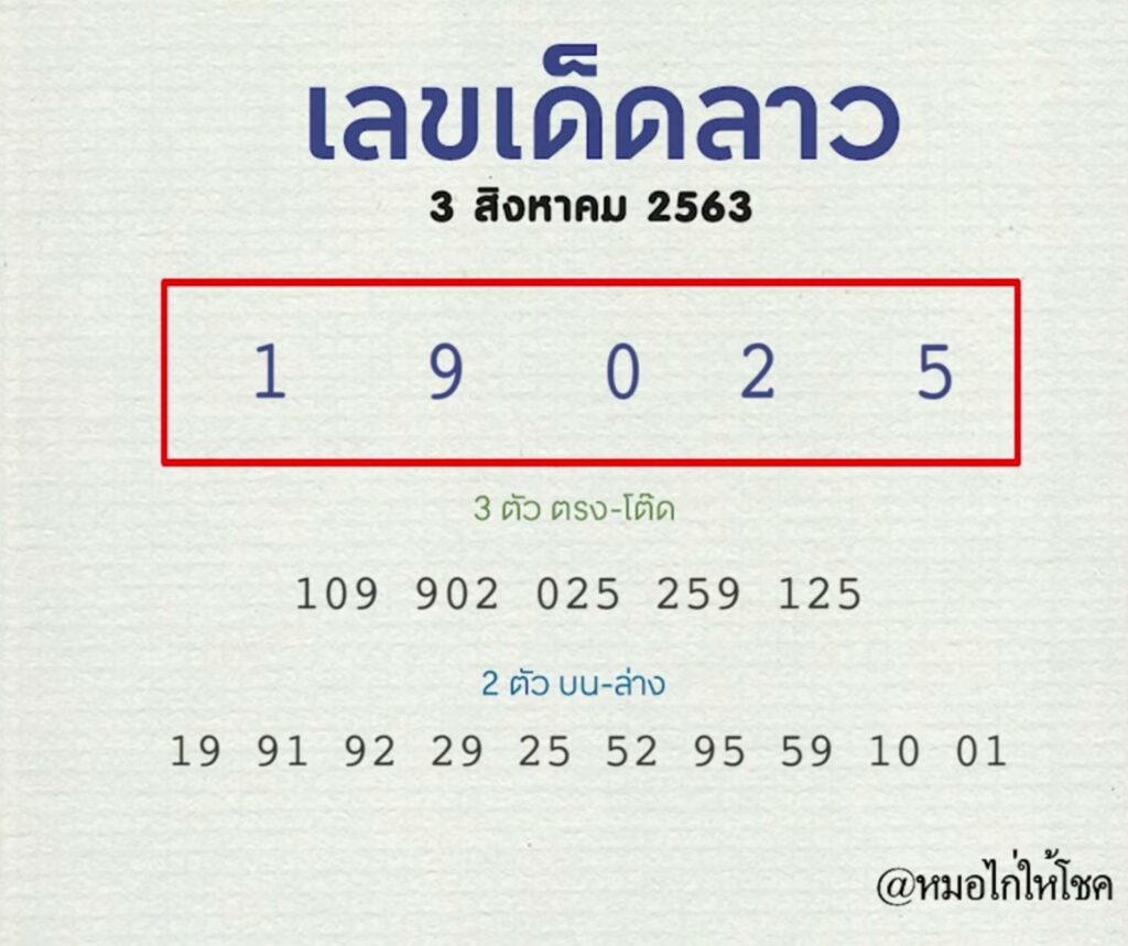 แนวทางหวยลาว งวดวันที่ 3 สิงหาคม 2563