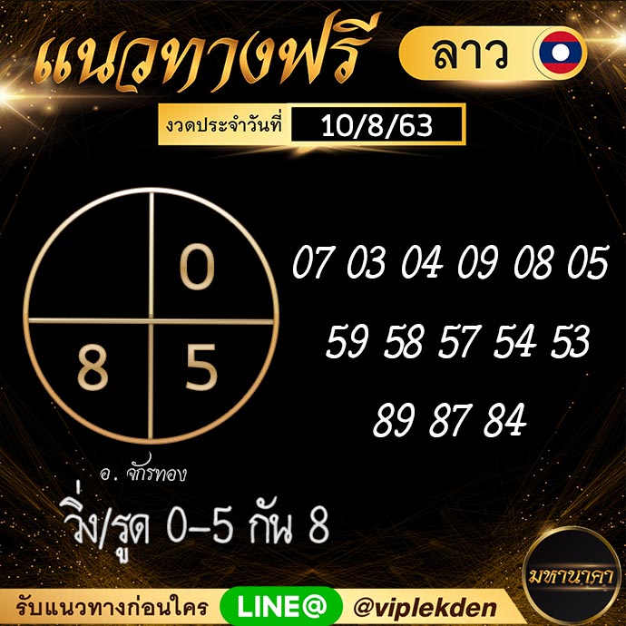 แนวทางหวยลาว งวดวันที่ 10 สิงหาคม 2563